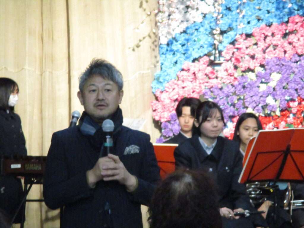 千厩高校の校長より吹奏楽部の紹介があり演奏が始まりました。