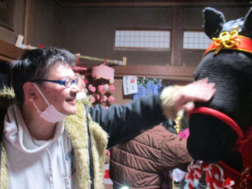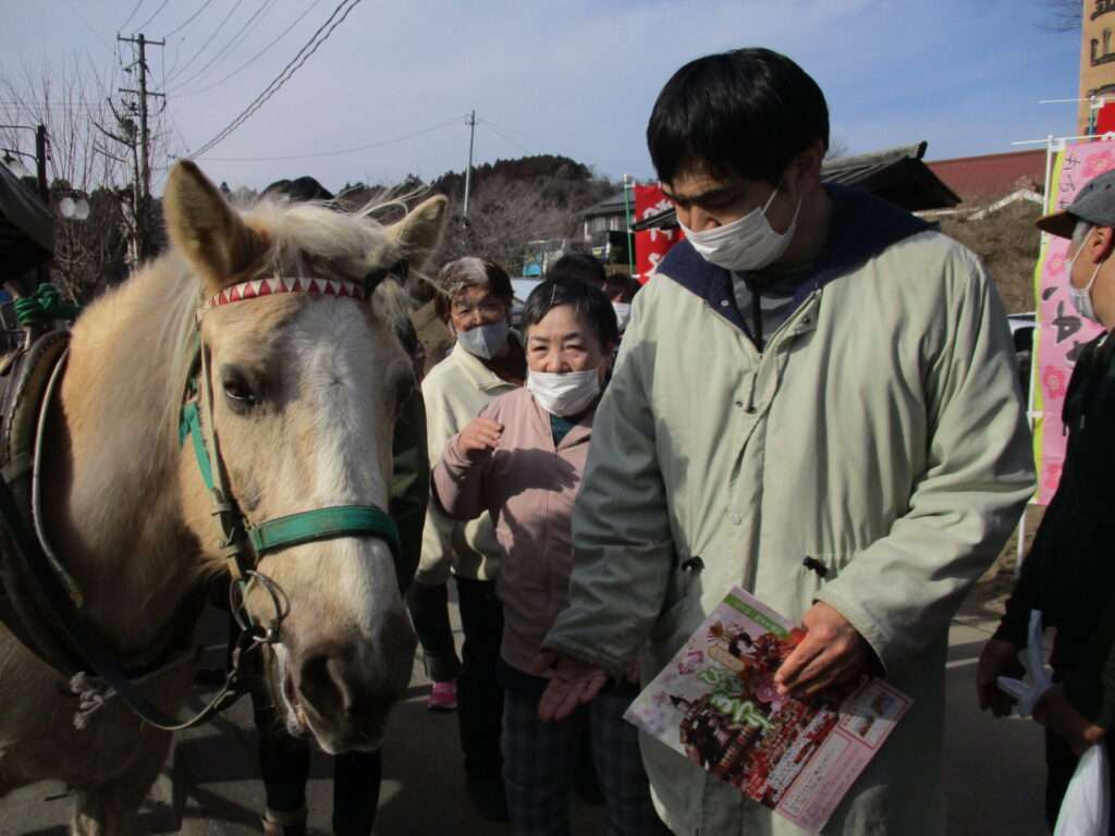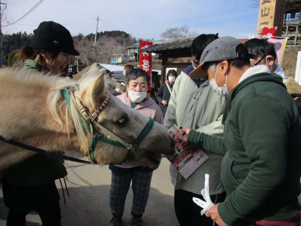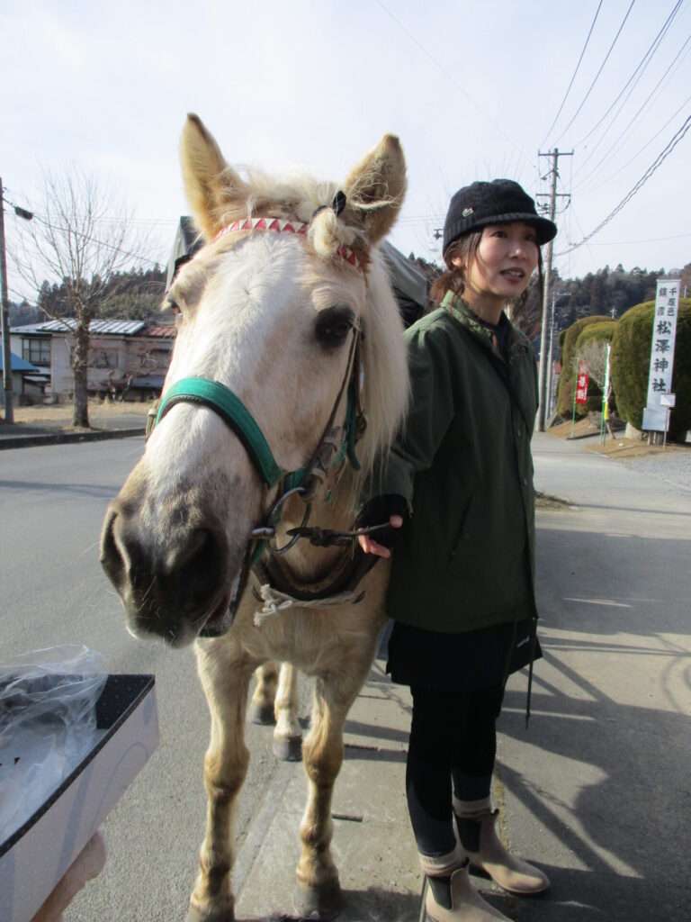 記念写真を撮り終えた後はタイミングよくうまっこ馬車が訪れ触れ合うことができました。