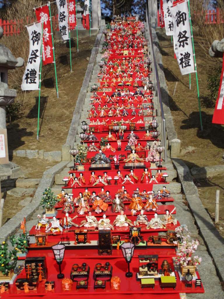 松澤神社では今年も素晴らしい雛段が飾られていました。