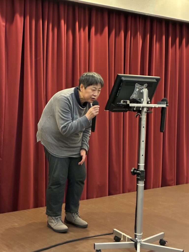 保護者会会長と管理者の挨拶をへてふじの花の思い出をつづったスライドショーへ
